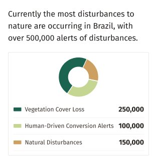 Our data comes via APIs from Global Forest Watch and Land & Carbon Lab, platforms powered by contributions from researchers and partners around the globe. This means verifiable data from authoritative sources.